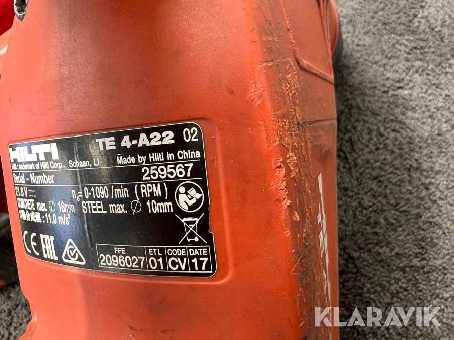 Borrhammare batteri Hilti TE 4-A22