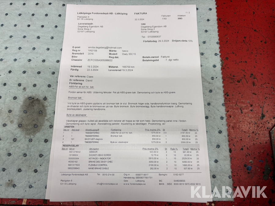 Boka frakt? Det finns ingen specifik information om frakt för just det här objektet, men om du skickar oss en förfrågan via vårt fraktformulär, så undersöker vi möjligheten. Paket, EU-pall eller större maskin? Klaravik har fraktavtal med Schenker och i de fall vi kan hjälpa till med frakt gäller det objekt som ryms i paket eller inom en EU-pall (upp till 120*80 cm och 990 kg). Det går att beställa frakt inom Sverige, dock inte till utlandet. Vid frakt på större maskiner rekommenderar vi gärna transportföretag som du kan kontakta.