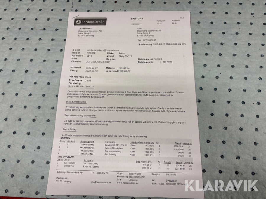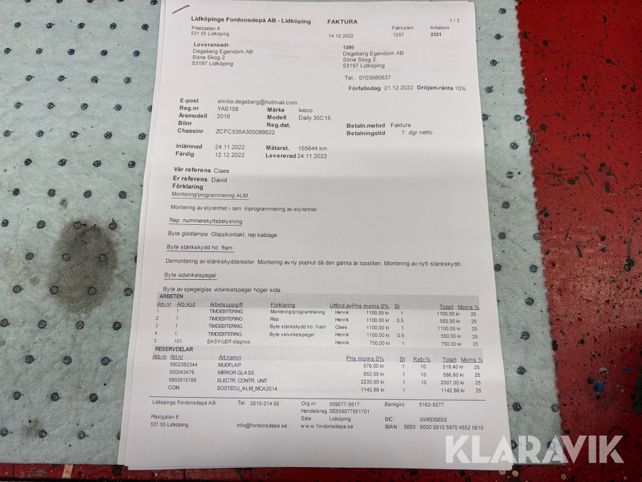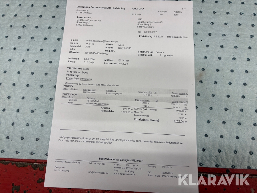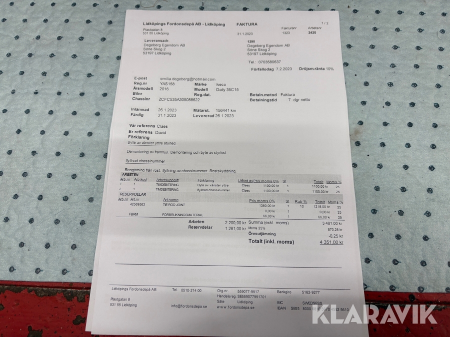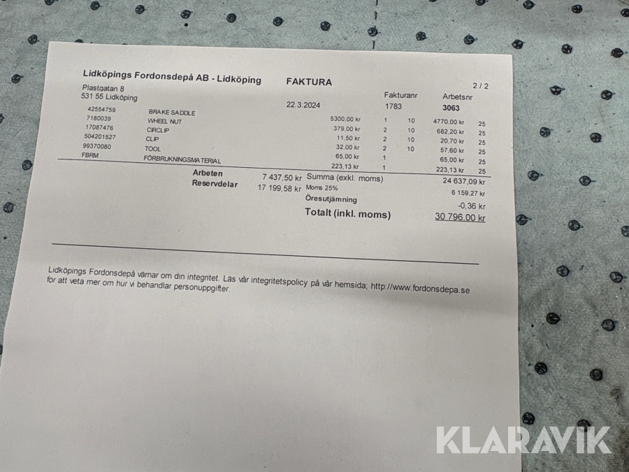 Du som köpare är skyldig att kontrollera objektet vid hämtning. Skiljer sig något avsevärt jämfört med informationen på klaravik.se? Kontakta då Klaravik innan du tar objektet från platsen. Läs fullständiga köpvillkor.