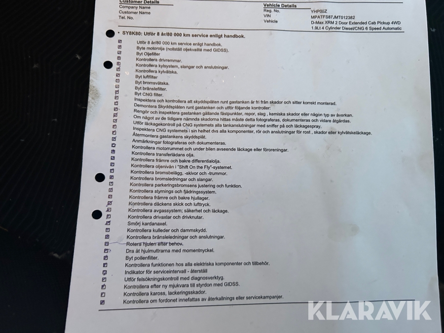 • Serie/chassinummer framgår