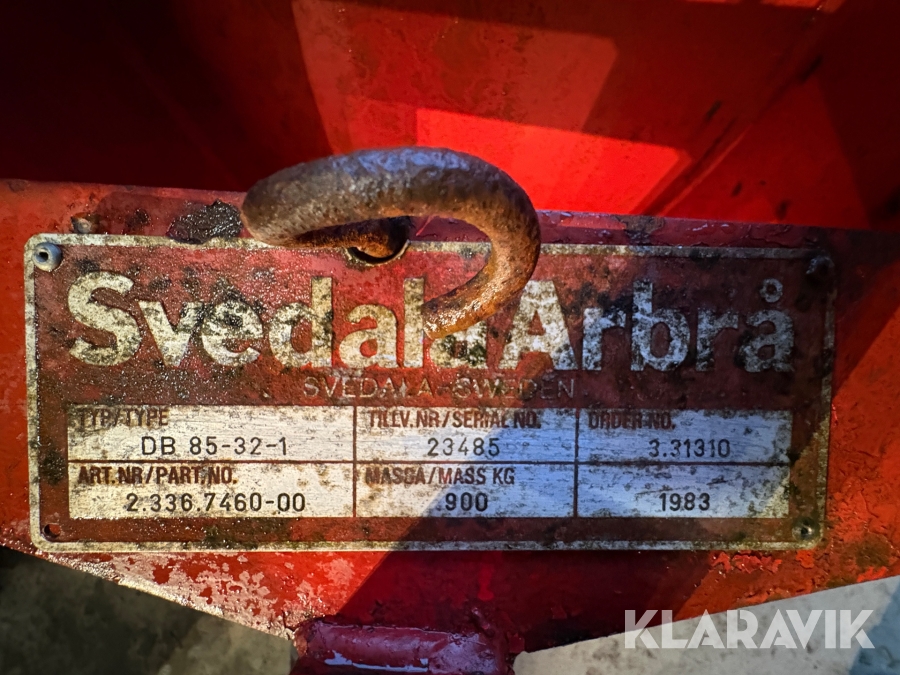 Boka frakt? Det finns ingen specifik information om frakt för just det här objektet, men om du skickar oss en förfrågan via vårt fraktformulär, så undersöker vi möjligheten. Paket, EU-pall eller större maskin? Klaravik har fraktavtal med Schenker och i de fall vi kan hjälpa till med frakt gäller det objekt som ryms i paket eller inom en EU-pall (upp till 120*80 cm och 990 kg). Det går att beställa frakt inom Sverige, dock inte till utlandet. Vid frakt på större maskiner rekommenderar vi gärna transportföretag som du kan kontakta.