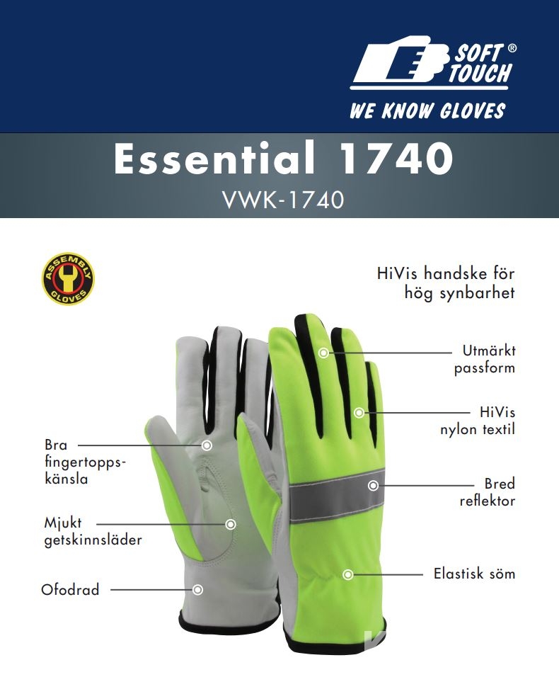 Vägarbetshandske gul 360 par Soft Touch ® Essential