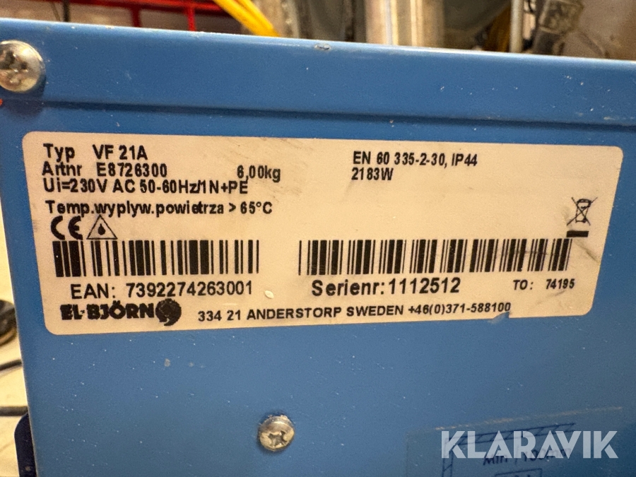 Varmluftsfläkt El-Björn VF 21 A