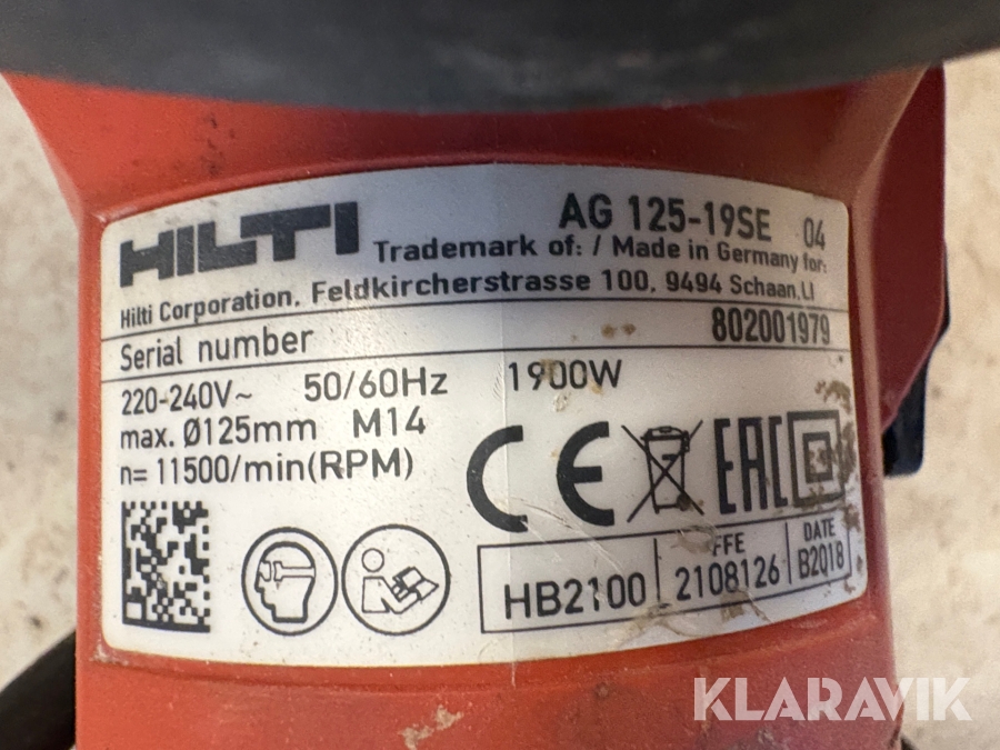 Slipmaskin Hilti AG 125-19SE