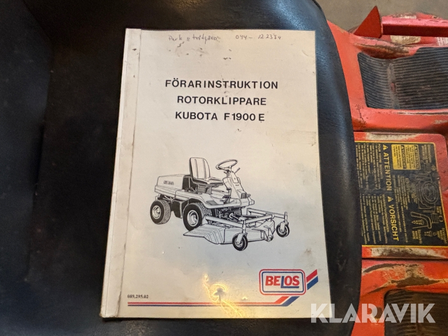 Åkgräsklippare Kubota F1900 E med vagn