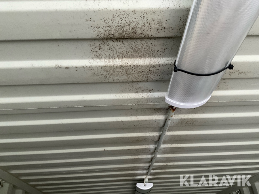 Fläckar med svartmögel förekommer i taket.