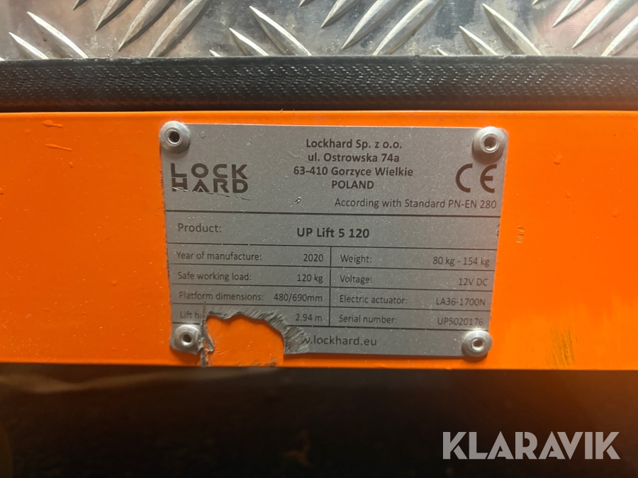Pelarlift Lockhard UPLift 5 120 1 st