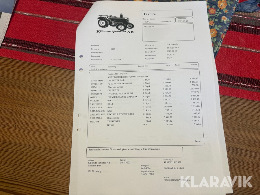 Du som köpare är skyldig att kontrollera objektet vid hämtning. Skiljer sig något avsevärt jämfört med informationen på klaravik.se? Kontakta då Klaravik innan du tar objektet från platsen. Läs fullständiga köpvillkor.