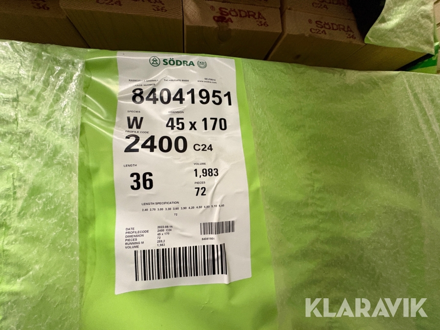 Träreglar Södra 45x170, 3,6 72st