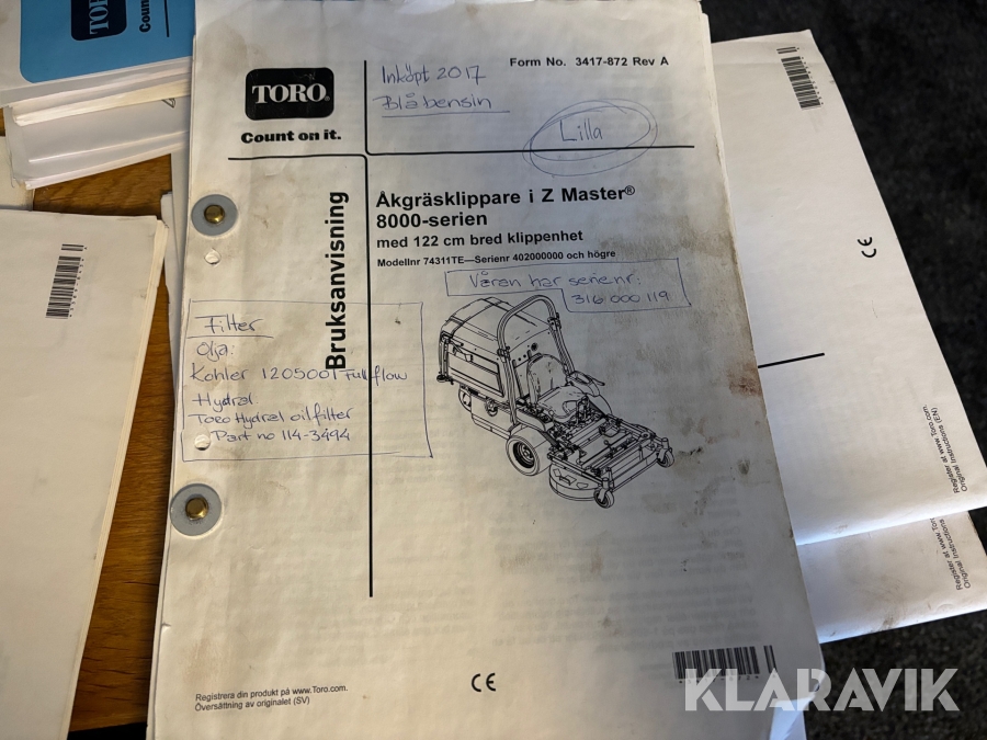 • Serie/chassinummer framgår