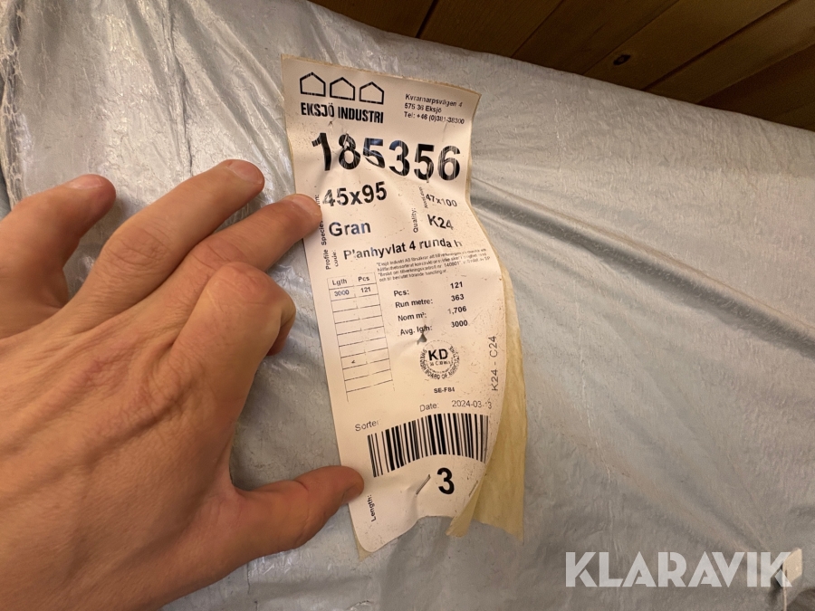 Träreglar Eksjö Industri AB Planhyvlat 45x95, 3 121st