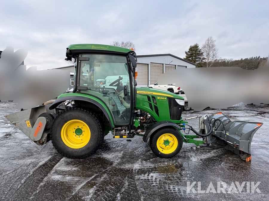 Traktor John Deere 3046R med lastare och 3 redskap