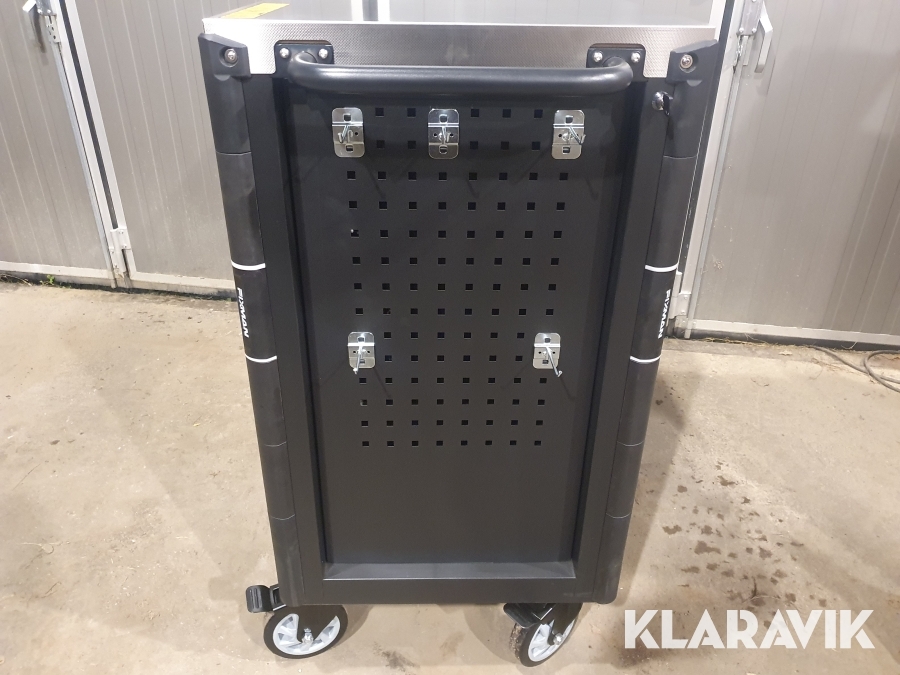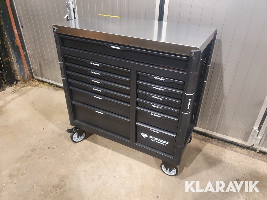 Vagn för verktyg tillverkad i stål med 13 lådor varav de 11 översta lådorna är fyllda med 467 st verktyg.