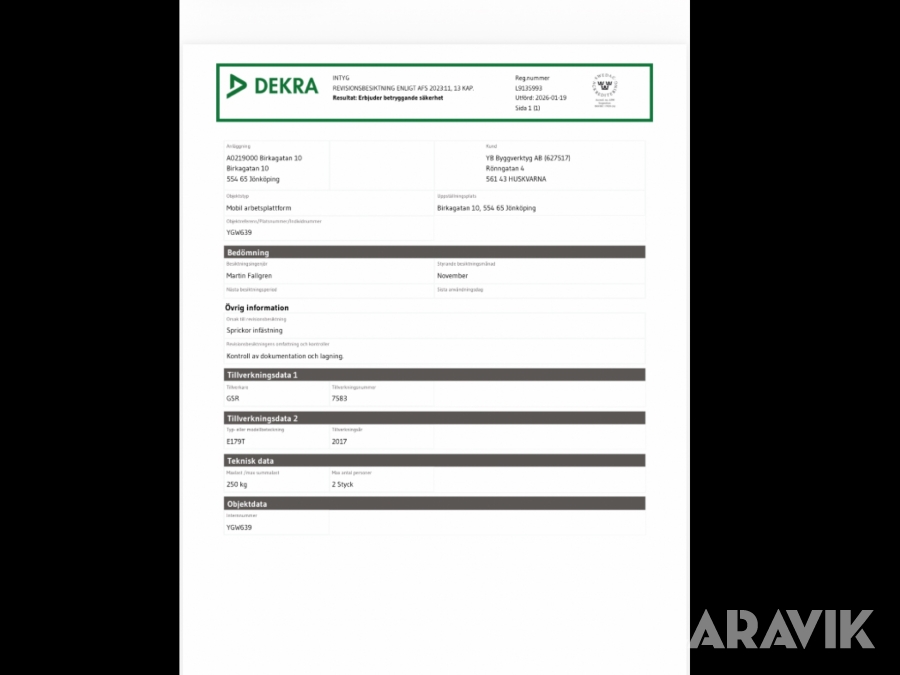 Du som köpare är skyldig att kontrollera objektet vid hämtning. Skiljer sig något avsevärt jämfört med informationen på klaravik.se? Kontakta då Klaravik innan du tar objektet från platsen. Läs fullständiga köpvillkor.