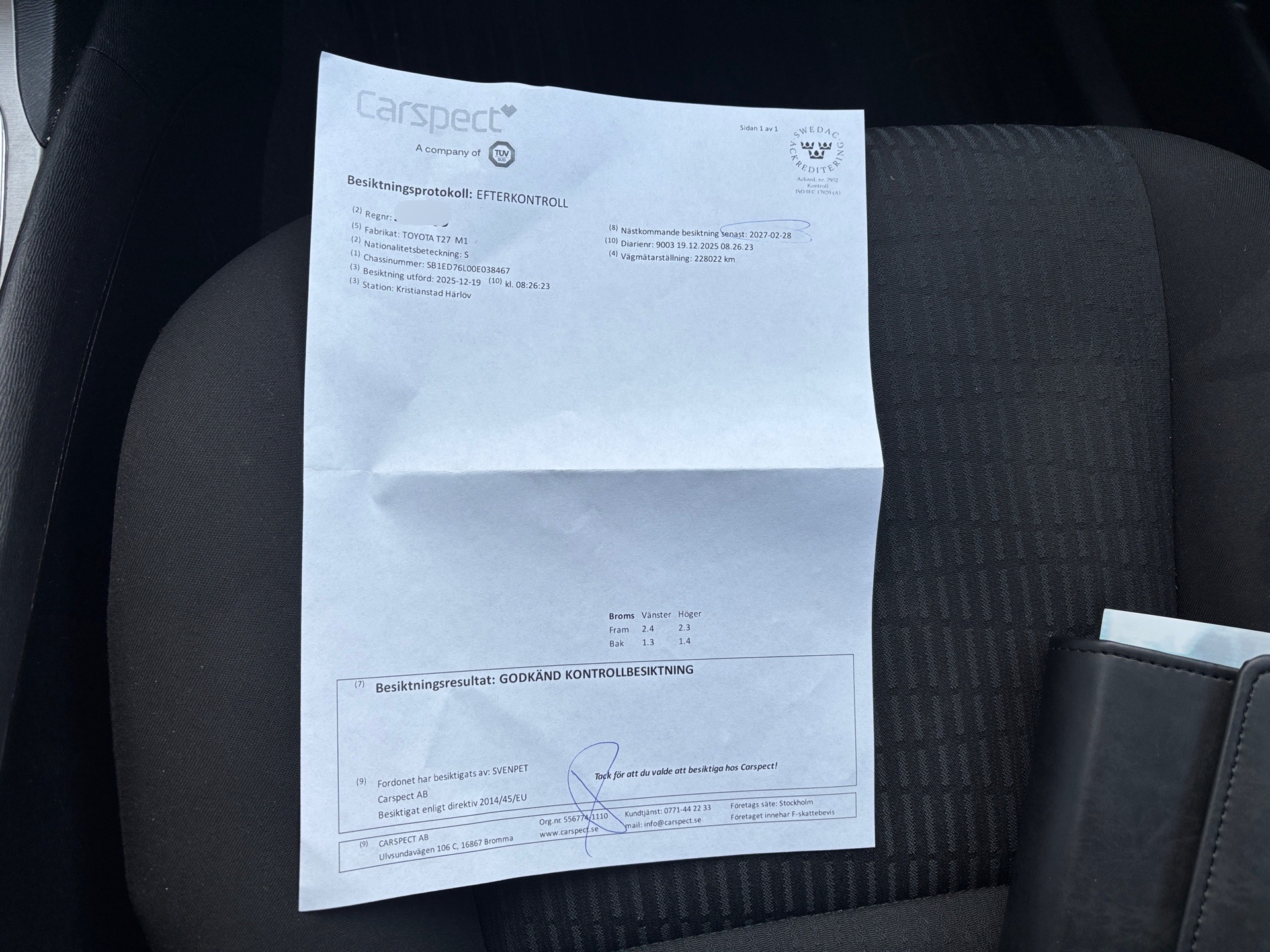• Serie/chassinummer framgår