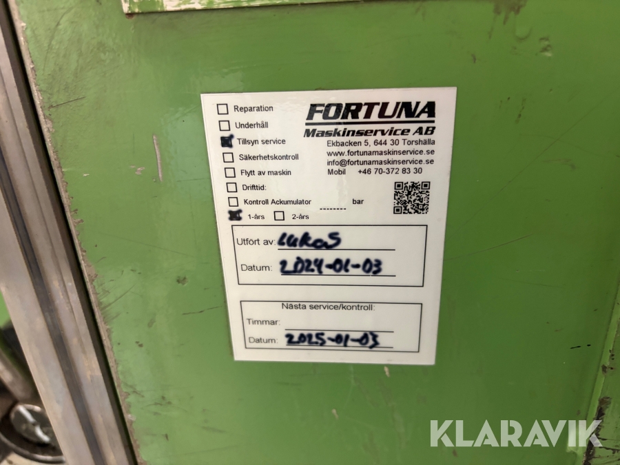 Boka frakt? Det finns ingen specifik information om frakt för just det här objektet, men om du skickar oss en förfrågan via vårt fraktformulär, så undersöker vi möjligheten. Paket, EU-pall eller större maskin? Klaravik har fraktavtal med Schenker och i de fall vi kan hjälpa till med frakt gäller det objekt som ryms i paket eller inom en EU-pall (upp till 120*80 cm och 990 kg). Det går att beställa frakt inom Sverige, dock inte till utlandet. Vid frakt på större maskiner rekommenderar vi gärna transportföretag som du kan kontakta.
