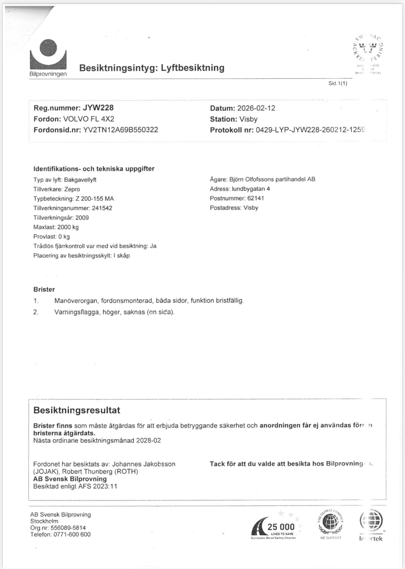 • Serie/chassinummer framgår