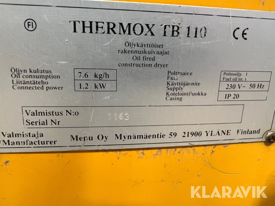 Luftvärmare värmeväxlare olja 90 kw Thermox TB110