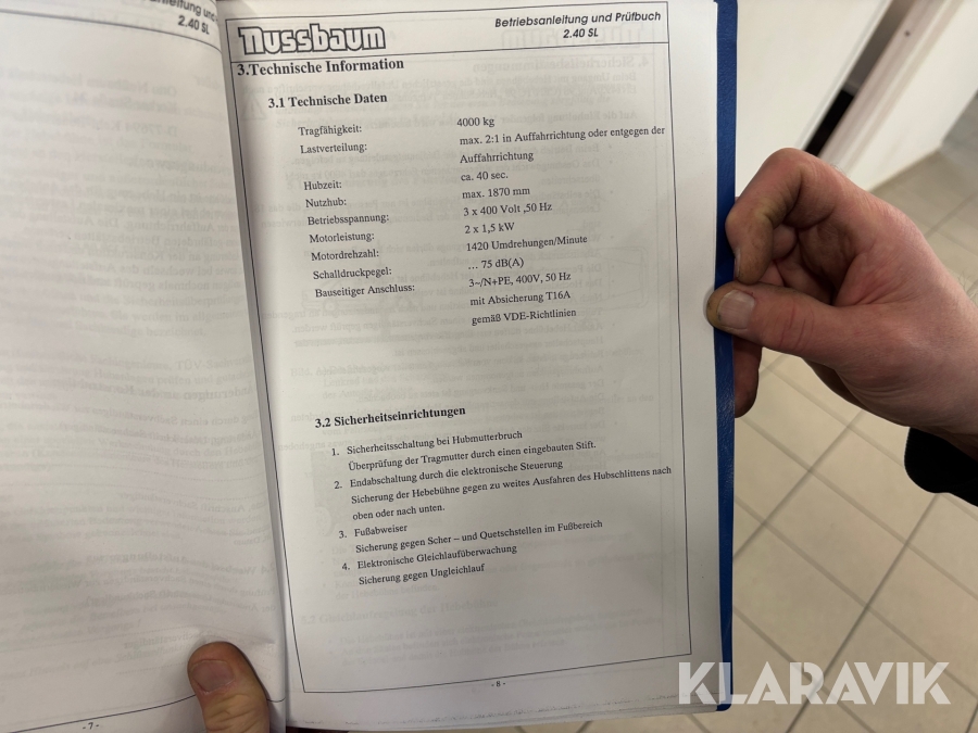 Tvåpelarlyft Nussbaum 2.40 SL MM