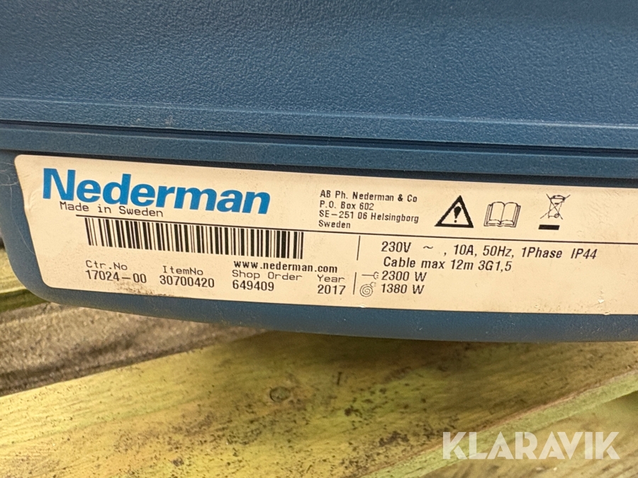 Boka frakt? Det finns ingen specifik information om frakt för just det här objektet, men om du skickar oss en förfrågan via vårt fraktformulär, så undersöker vi möjligheten. Paket, EU-pall eller större maskin? Klaravik har fraktavtal med Schenker och i de fall vi kan hjälpa till med frakt gäller det objekt som ryms i paket eller inom en EU-pall (upp till 120*80 cm och 990 kg). Det går att beställa frakt inom Sverige, dock inte till utlandet. Vid frakt på större maskiner rekommenderar vi gärna transportföretag som du kan kontakta.
