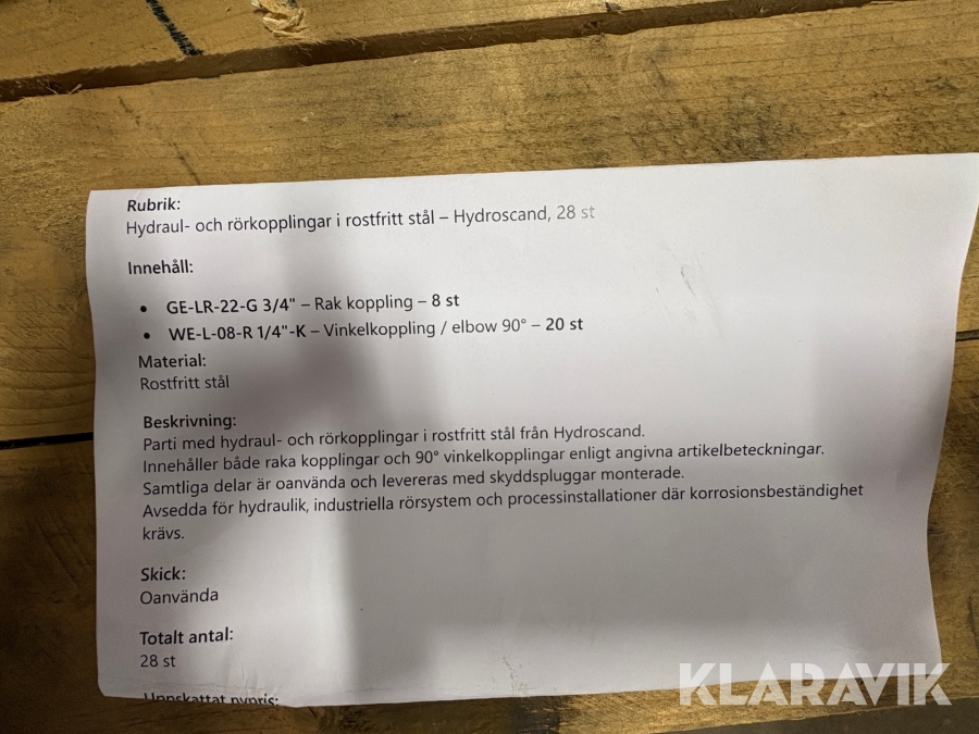 Du som köpare är skyldig att kontrollera objektet vid hämtning. Skiljer sig något avsevärt jämfört med informationen på klaravik.se? Kontakta då Klaravik innan du tar objektet från platsen. Läs fullständiga köpvillkor.