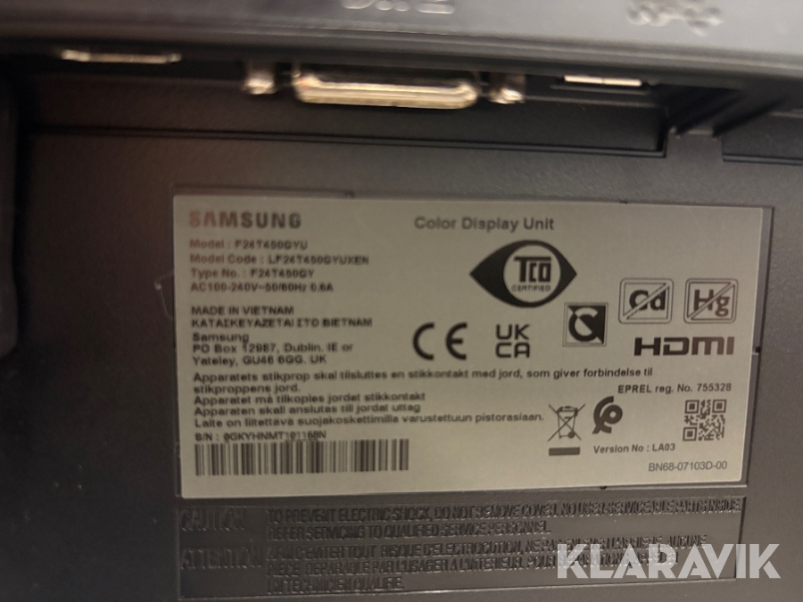 • Serie/chassinummer framgår