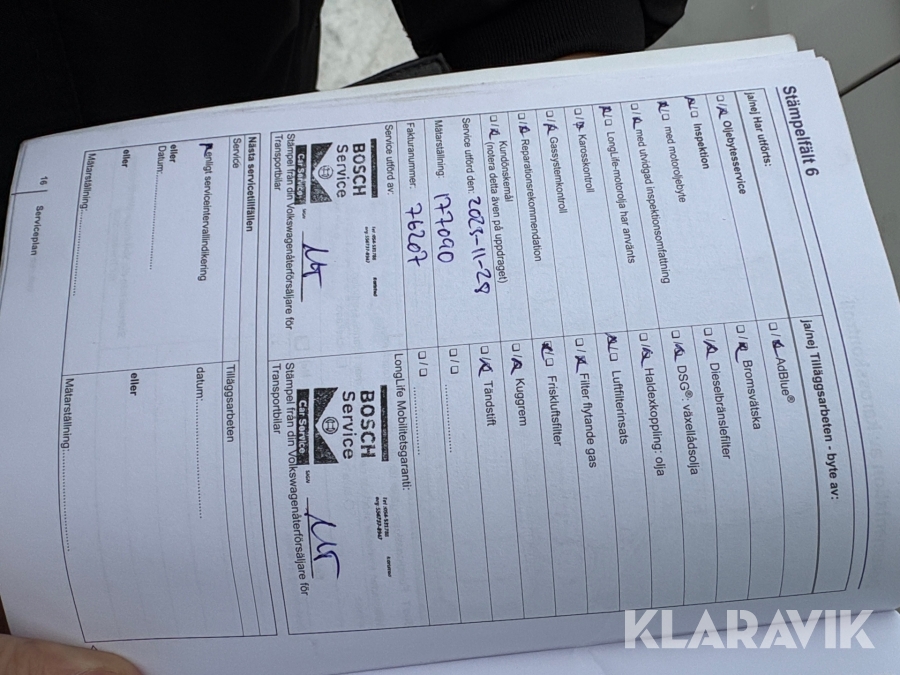 • Serie/chassinummer framgår