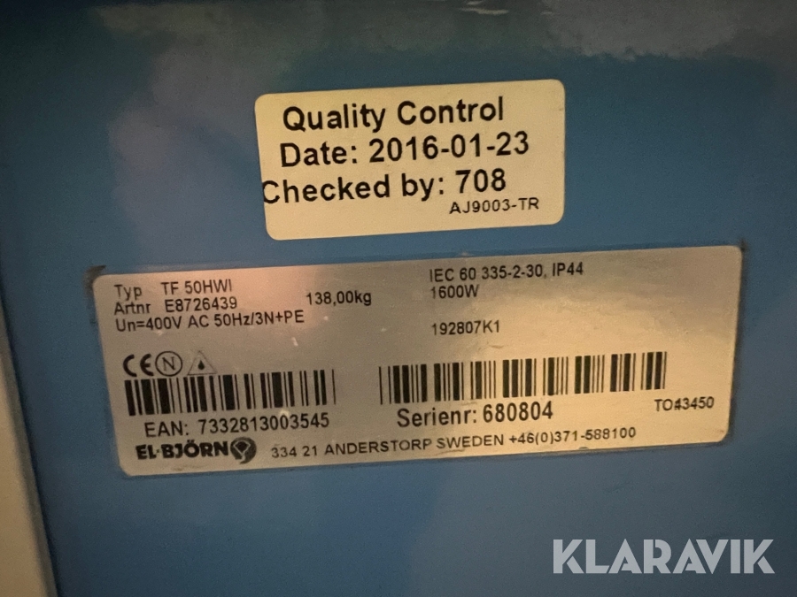 Du som köpare är skyldig att kontrollera objektet vid hämtning. Skiljer sig något avsevärt jämfört med informationen på klaravik.se? Kontakta då Klaravik innan du tar objektet från platsen. Läs fullständiga köpvillkor.