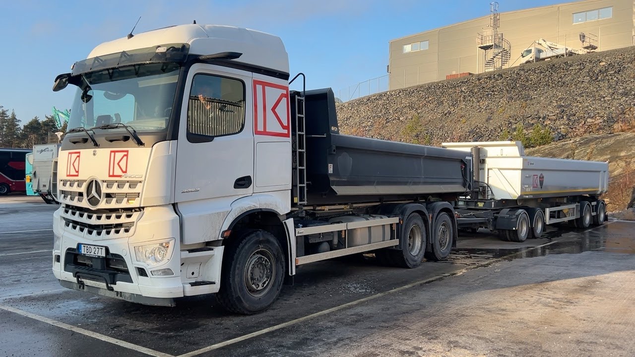 Ekipage lastväxlare Mercedes-Benz Arocs 2853 inkl tippsläp & grusflak