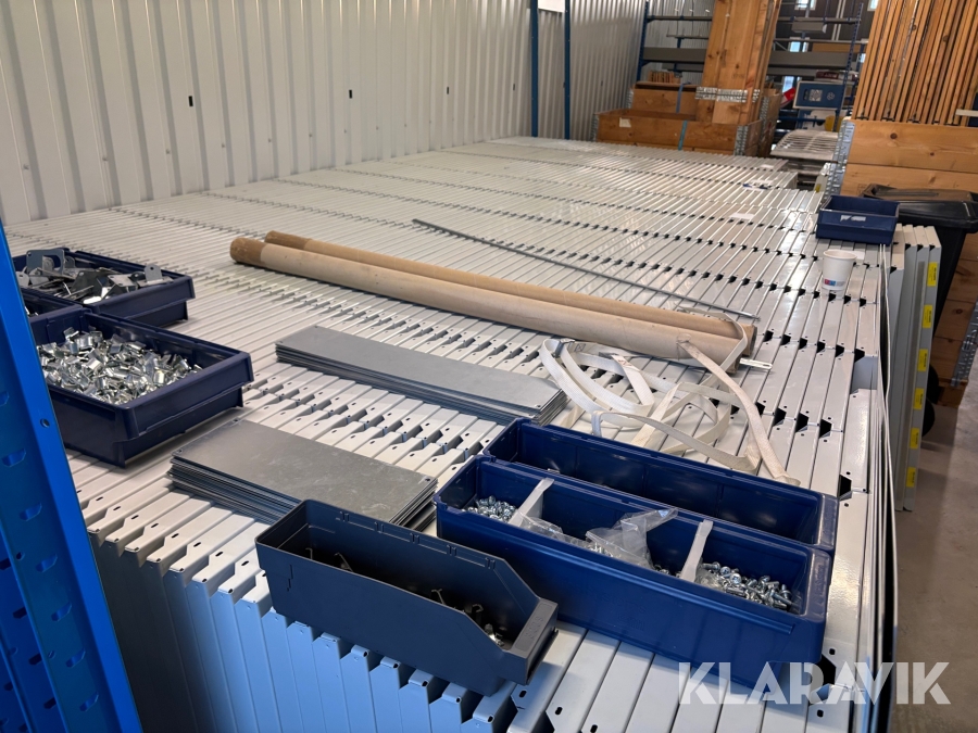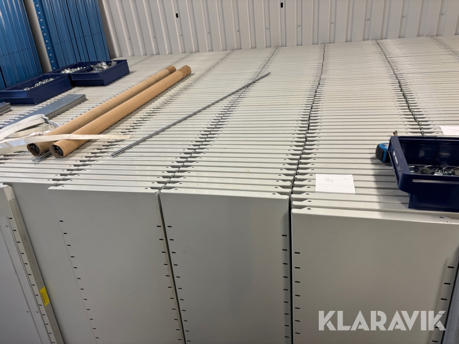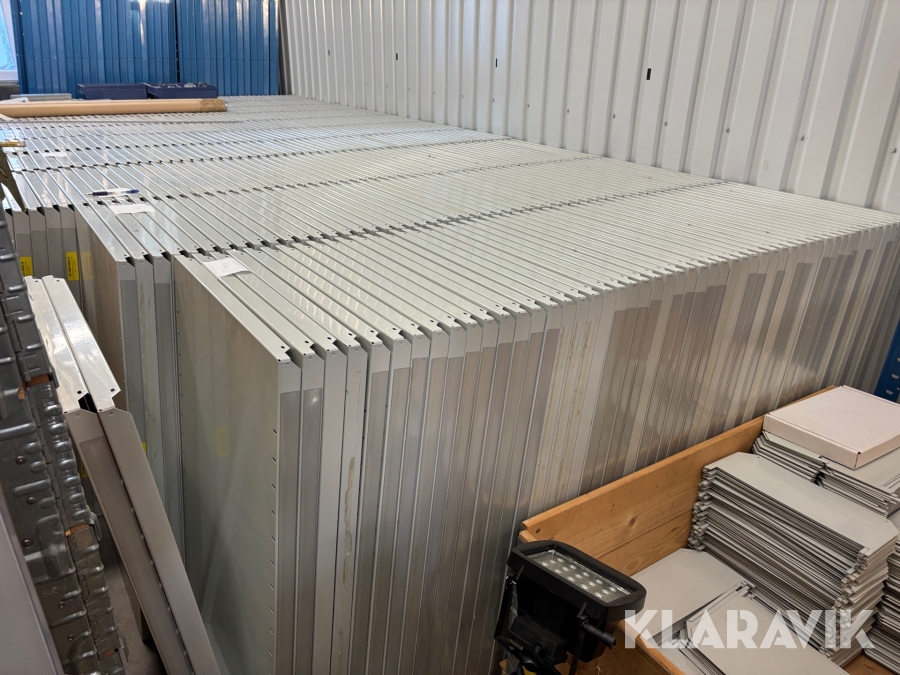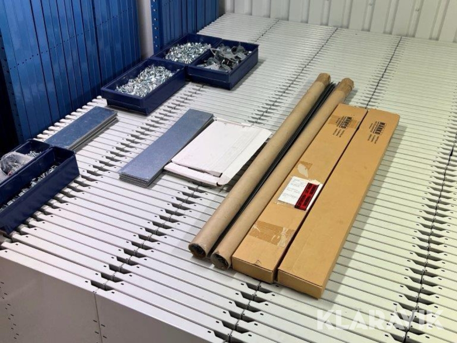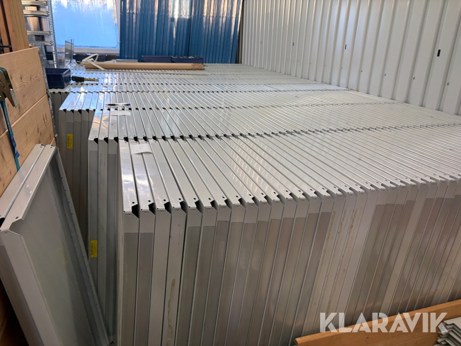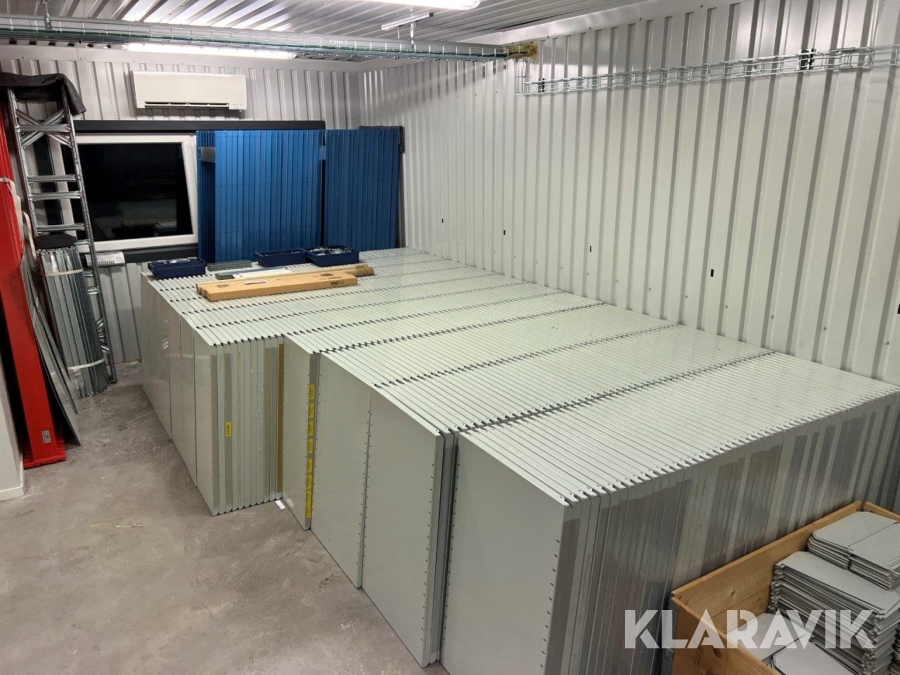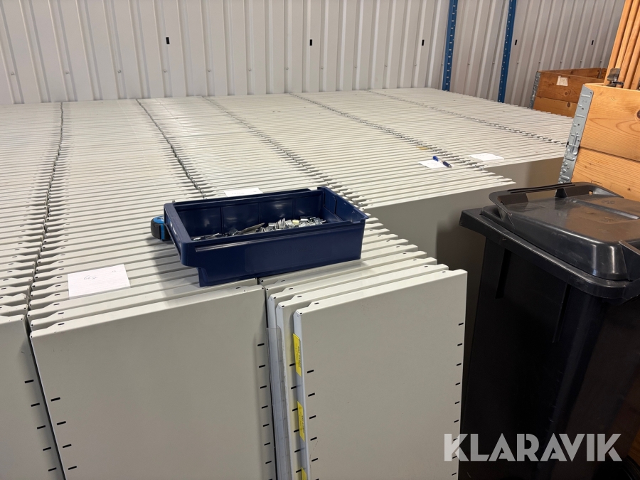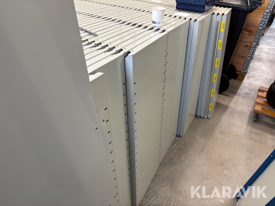 Stort parti med hyllsystem Brännhylte bruk Metro 35gavlar ca 630 hyllplan samt avdelare