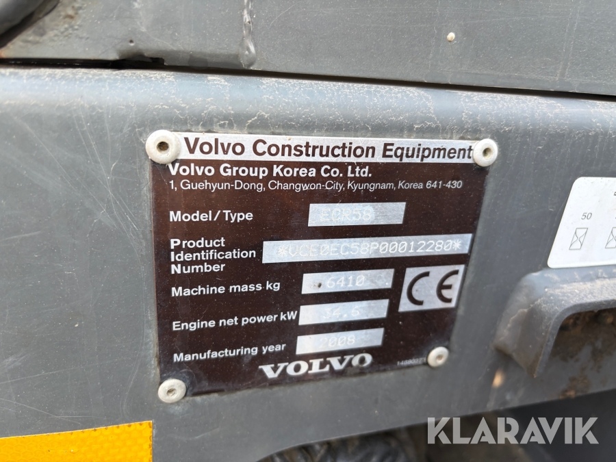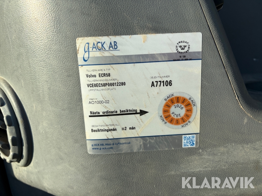 Grävmaskin Volvo ECR58Plus med tiltrotator och skopa