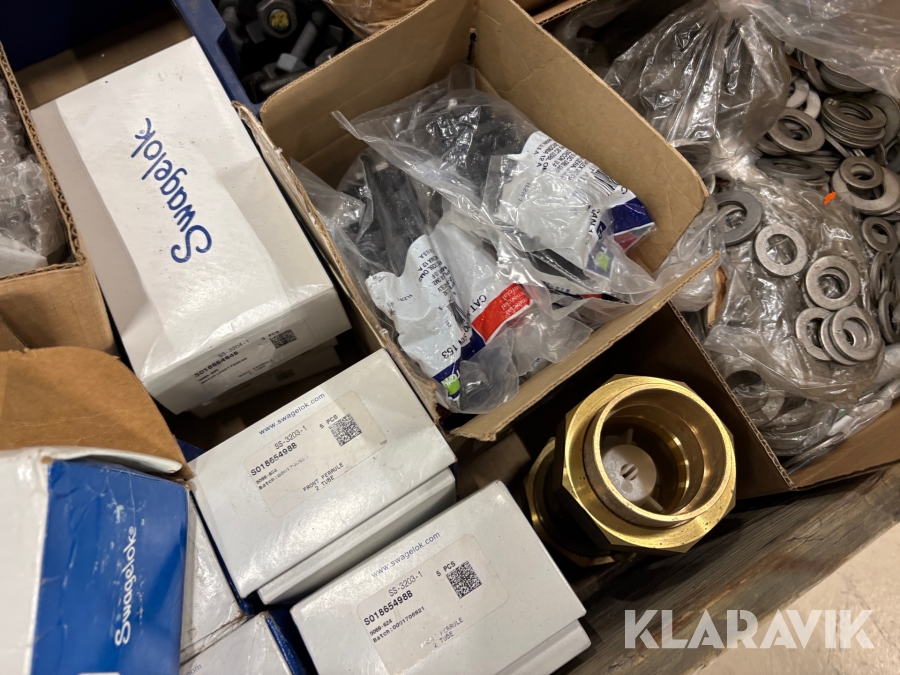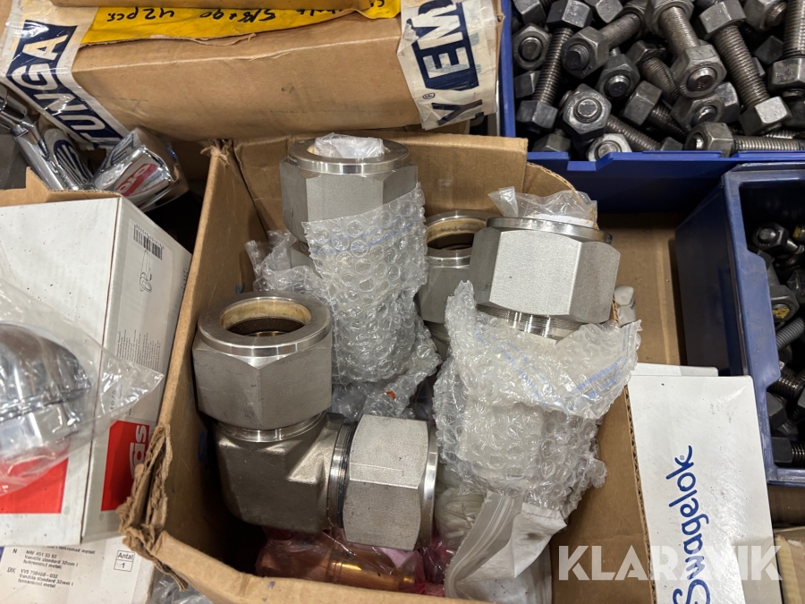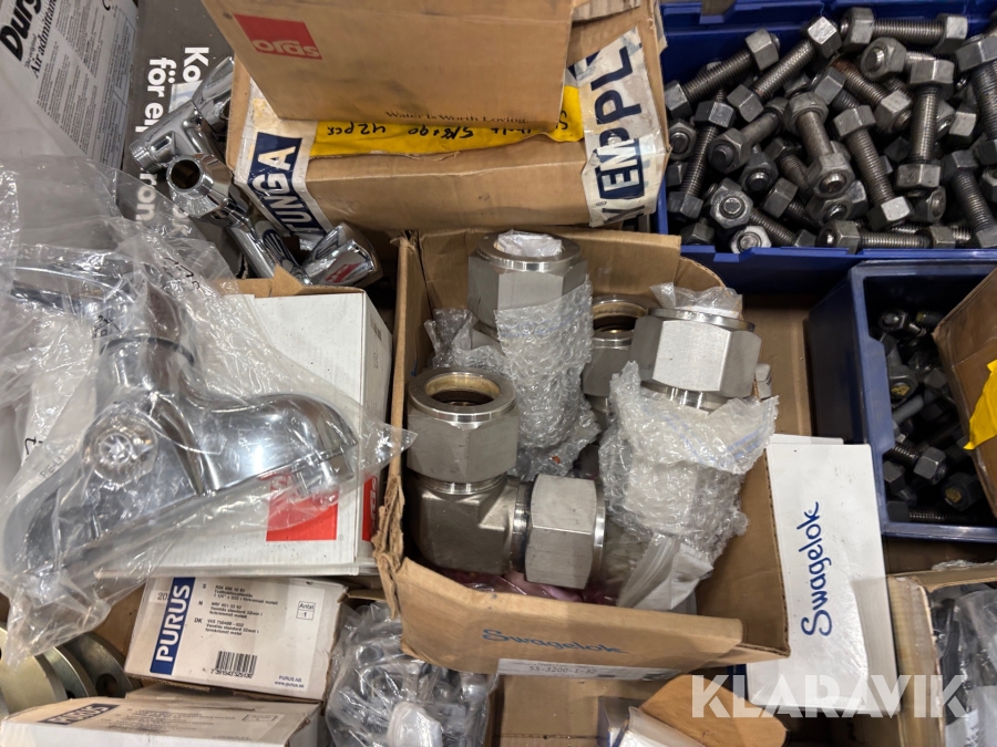 Pall med diverse bult och kopplingar Swagelok / Durgo / Purus