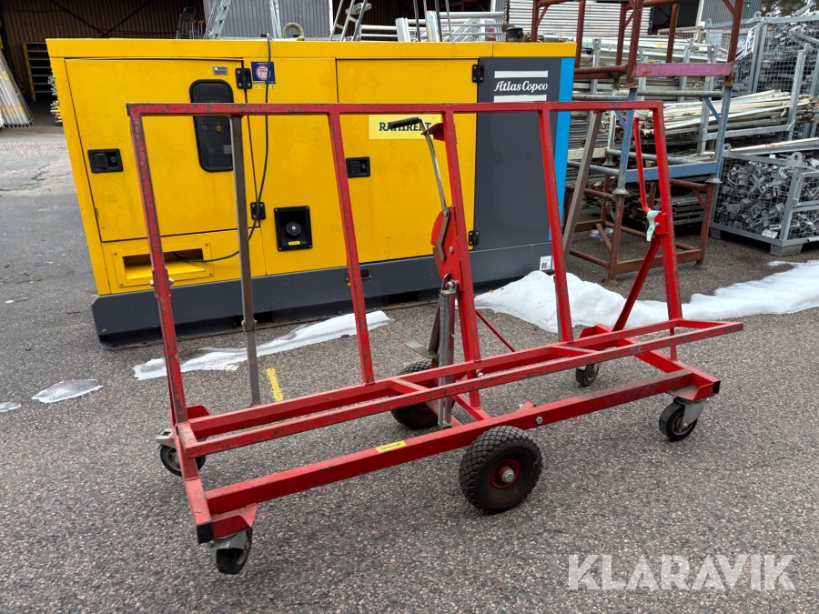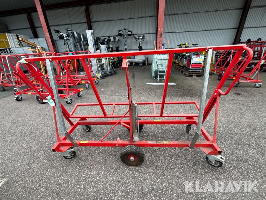 Skivvagnens funktion är att kunna förflytta gipsmaterial och skivor på ett enkelt och smidigt sätt från gipsbockar till monteringsplatsen. Tack vare dess smarta konstruktion kan du även nyttja skivvagnen för att skära till och anpassa ditt gipsmaterial direkt på plats, innan det ska vidare för montering.
