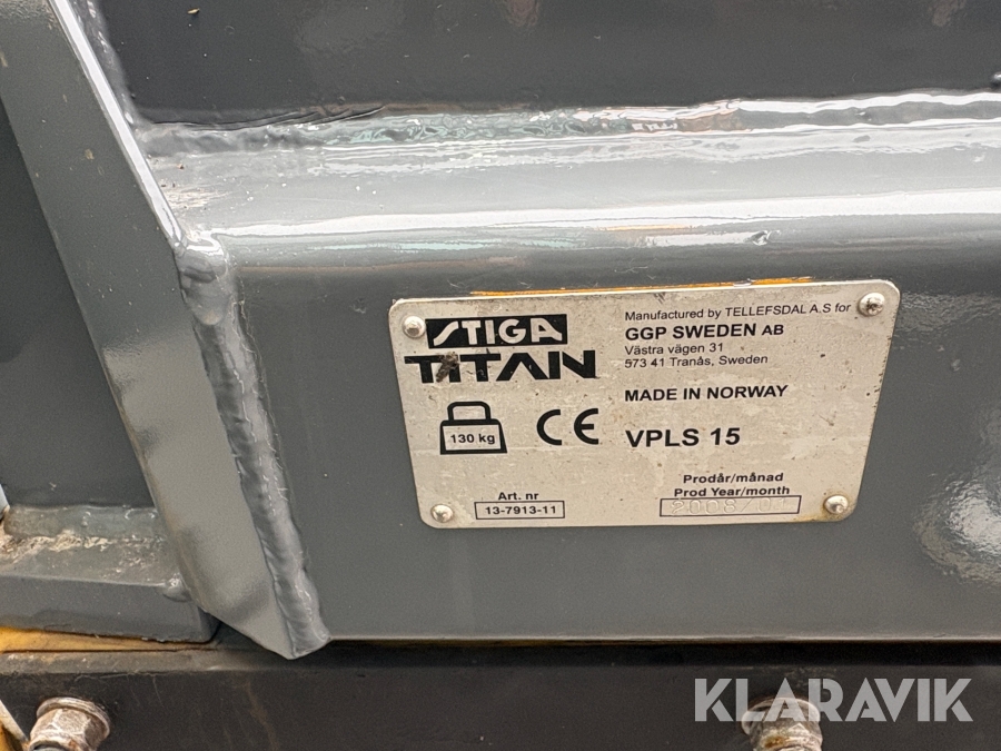 Boka frakt? Det finns ingen specifik information om frakt för just det här objektet, men om du skickar oss en förfrågan via vårt fraktformulär, så undersöker vi möjligheten. Paket, EU-pall eller större maskin? Klaravik har fraktavtal med Schenker och i de fall vi kan hjälpa till med frakt gäller det objekt som ryms i paket eller inom en EU-pall (upp till 120*80 cm och 990 kg). Det går att beställa frakt inom Sverige, dock inte till utlandet. Vid frakt på större maskiner rekommenderar vi gärna transportföretag som du kan kontakta.