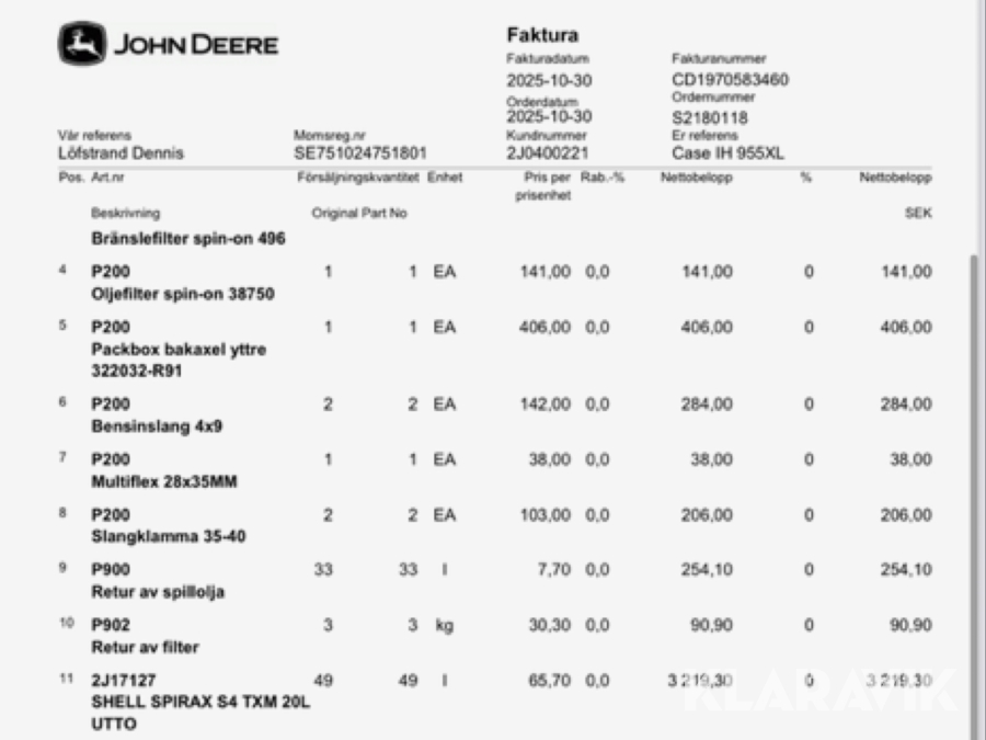 • Serie/chassinummer framgår