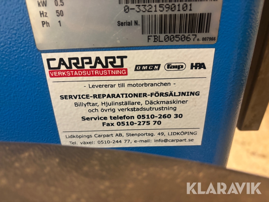 Boka frakt? Det finns ingen specifik information om frakt för just det här objektet, men om du skickar oss en förfrågan via vårt fraktformulär, så undersöker vi möjligheten. Paket, EU-pall eller större maskin? Klaravik har fraktavtal med Schenker och i de fall vi kan hjälpa till med frakt gäller det objekt som ryms i paket eller inom en EU-pall (upp till 120*80 cm och 990 kg). Det går att beställa frakt inom Sverige, dock inte till utlandet. Vid frakt på större maskiner rekommenderar vi gärna transportföretag som du kan kontakta.