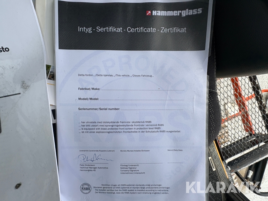 • Serie/chassinummer framgår