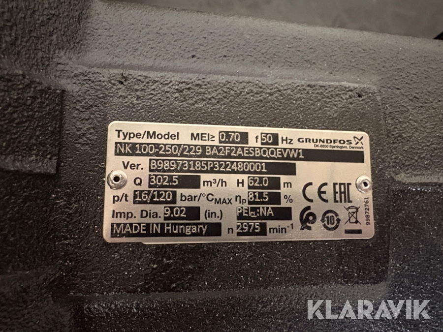 Centrifugalpump grundfos Nk100-250/229
