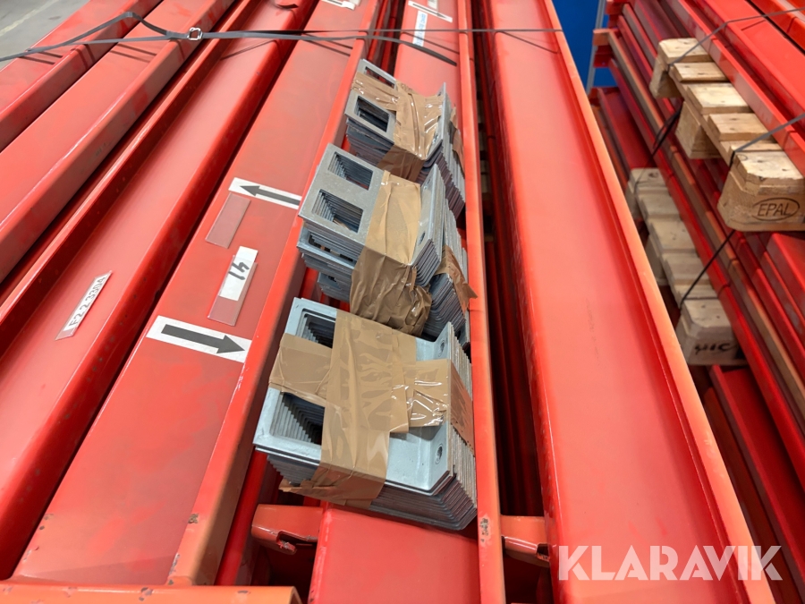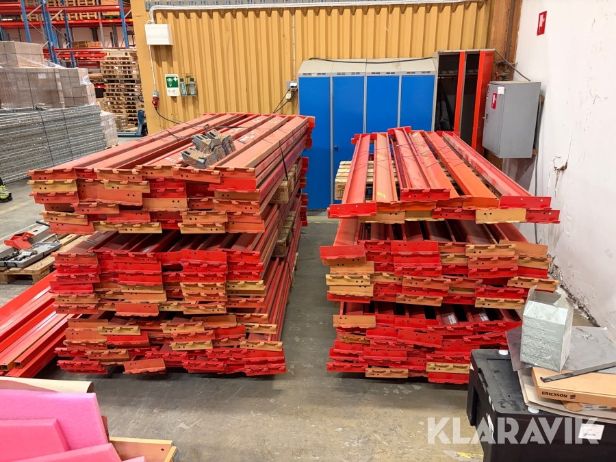 Parti med pallstallage bärbalkar och stopbalkar EAB City pallställ
