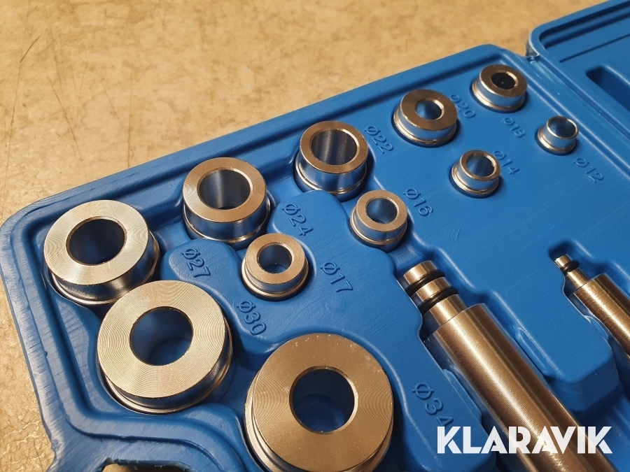 Sats med bussning och lagermonterings verktyg för lagerbanor och packboxar.