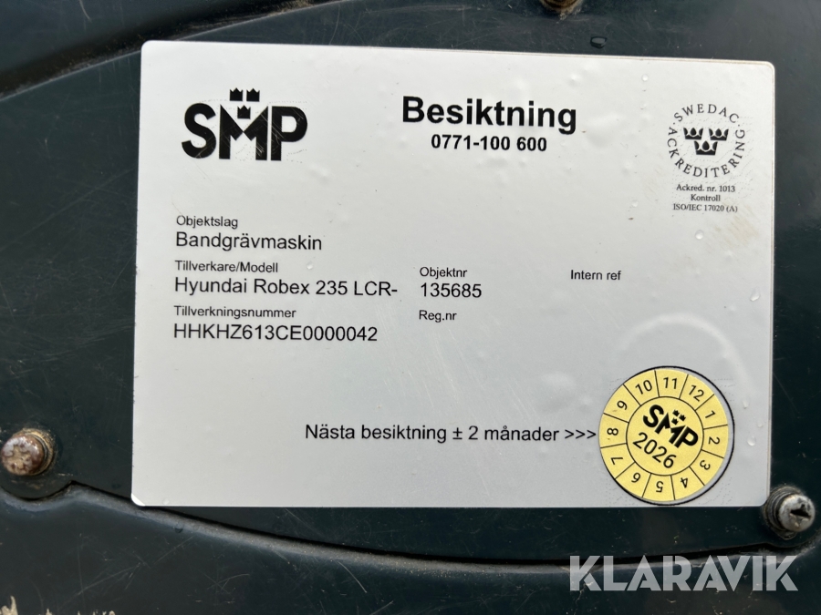 Grävmaskin Hyundai Robex 235LCR-9A med rotator & 3 skopor