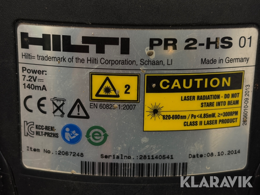 Planlaser 1 st, Lasermottagare 1 st Hilti PR 2-HS / PRA 20