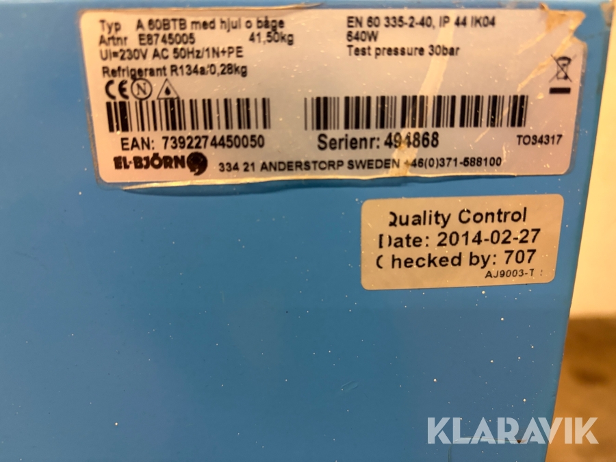 Boka frakt? Det finns ingen specifik information om frakt för just det här objektet, men om du skickar oss en förfrågan via vårt fraktformulär, så undersöker vi möjligheten. Paket, EU-pall eller större maskin? Klaravik har fraktavtal med Schenker och i de fall vi kan hjälpa till med frakt gäller det objekt som ryms i paket eller inom en EU-pall (upp till 120*80 cm och 990 kg). Det går att beställa frakt inom Sverige, dock inte till utlandet. Vid frakt på större maskiner rekommenderar vi gärna transportföretag som du kan kontakta.