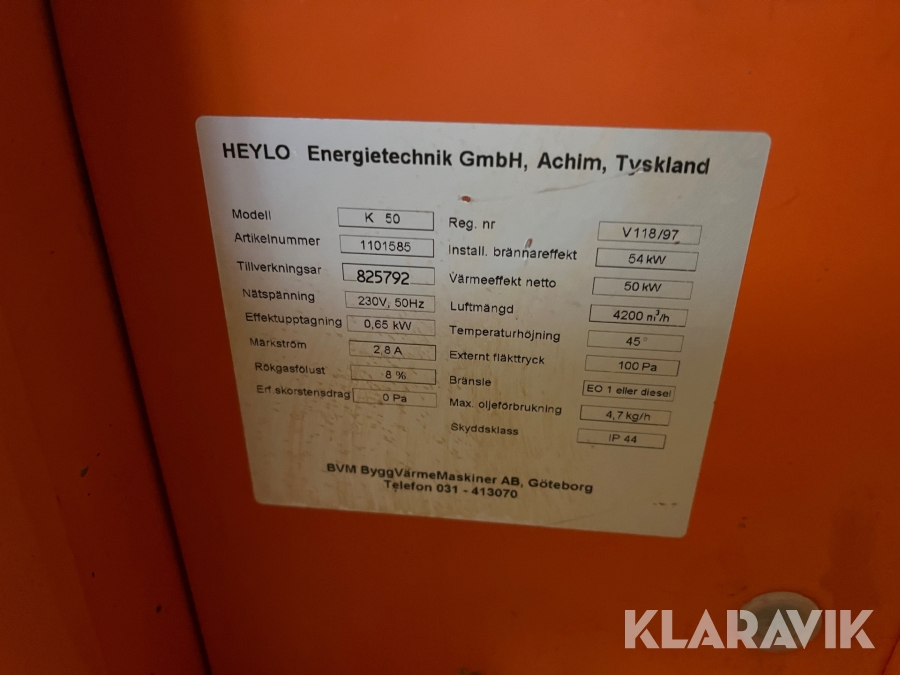 Heylo K 50 är tystgående och lämplig att använda i projekt med nära boende. Maskinen har fyrfaldig bränslefiltrering, dubbel oljeförvärmning, märkesbrännare av hög kvalitet och en verkningsgrad av 92%. De elektriska komponenterna är monterad i ett tempererat apparatskåp vilket effektivt skyddar mot fukt och korrosion.Chassit är tillverkat i galvaniserad stålplåt som pulverlackerats för största möjliga korrosionsskydd och slagtålighet. Lyftöglor finns i de fyra hörnen.