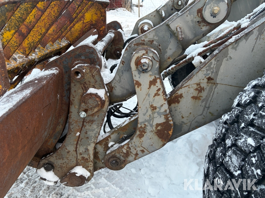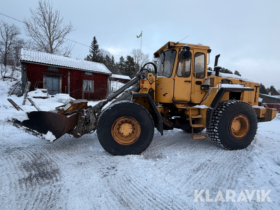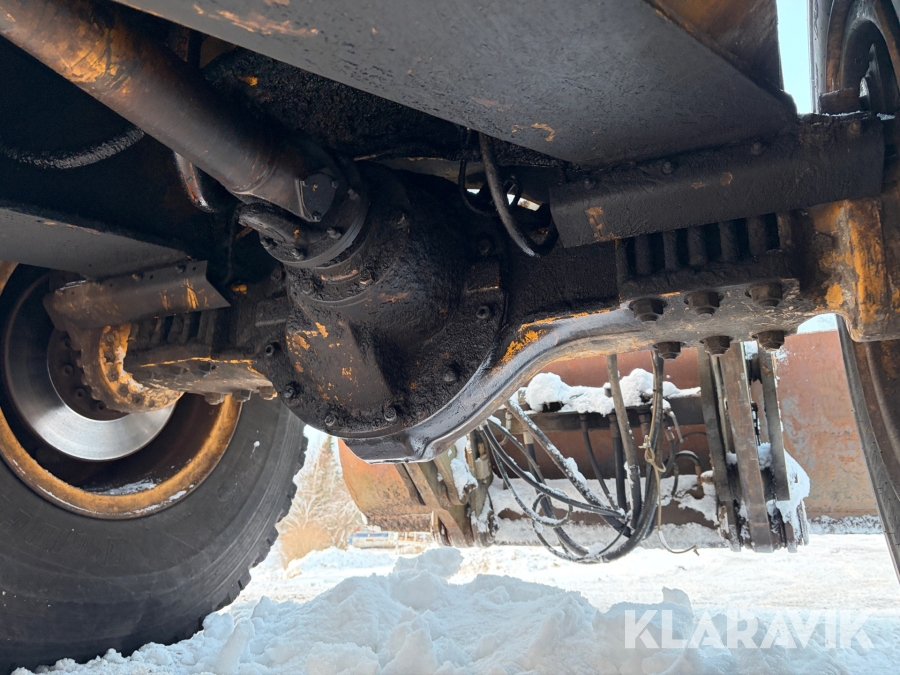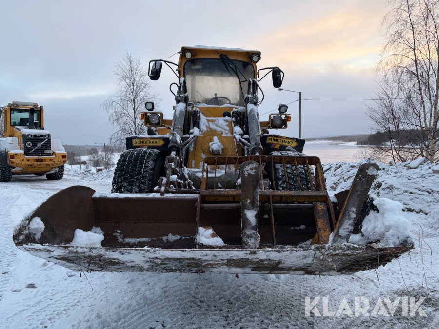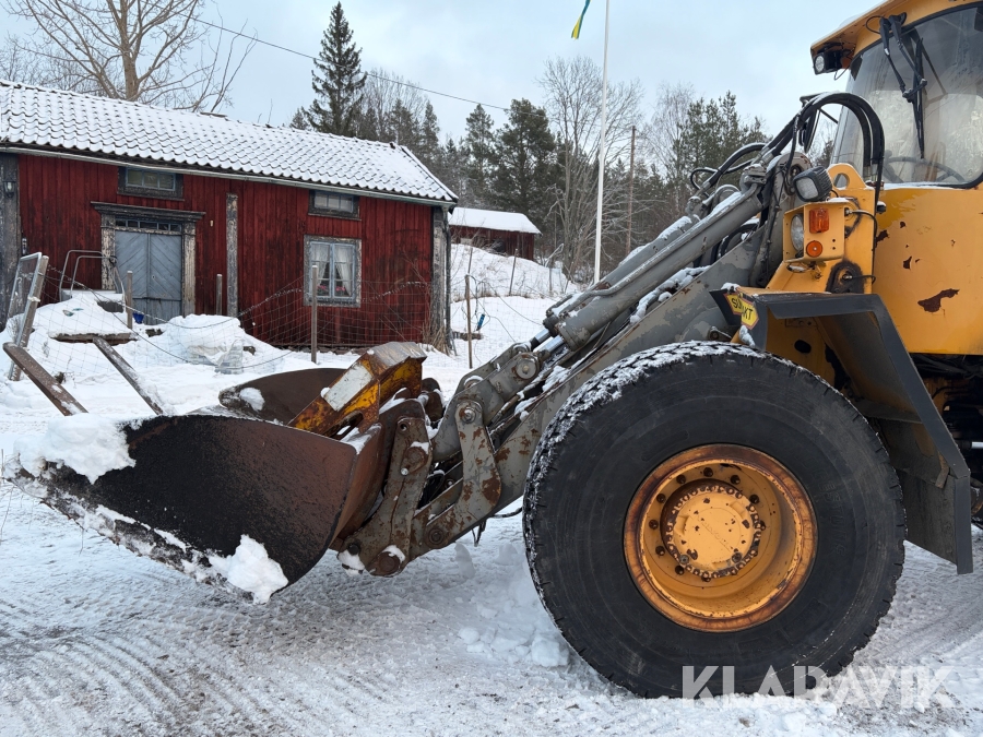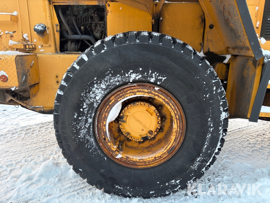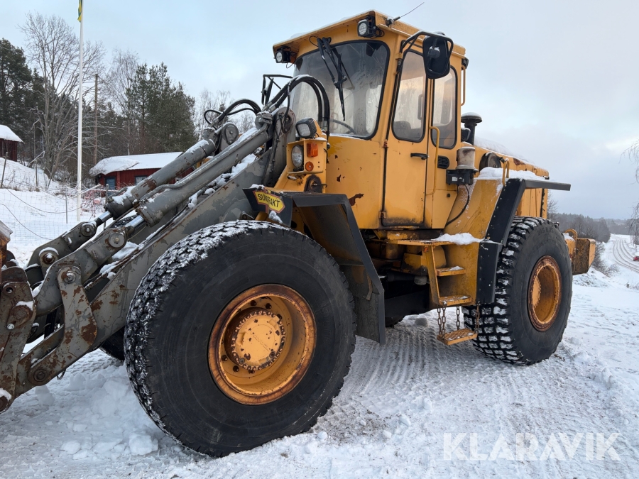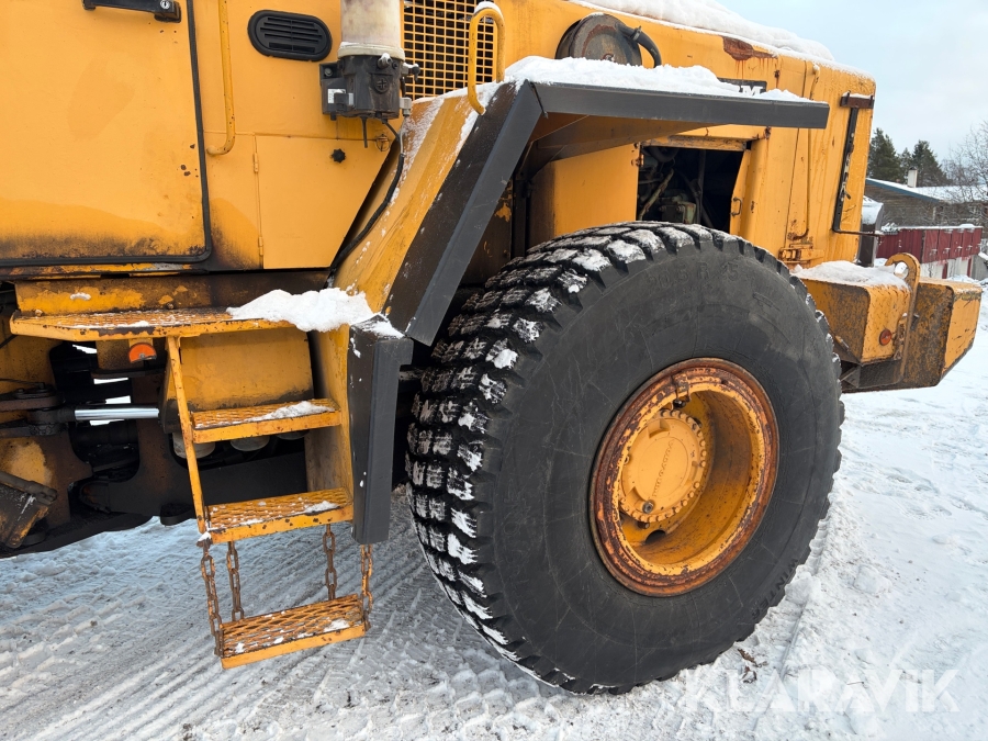 Hjullastare Volvo BM L90 med planeringsskopa och pallgafflar