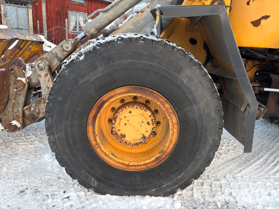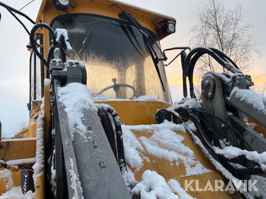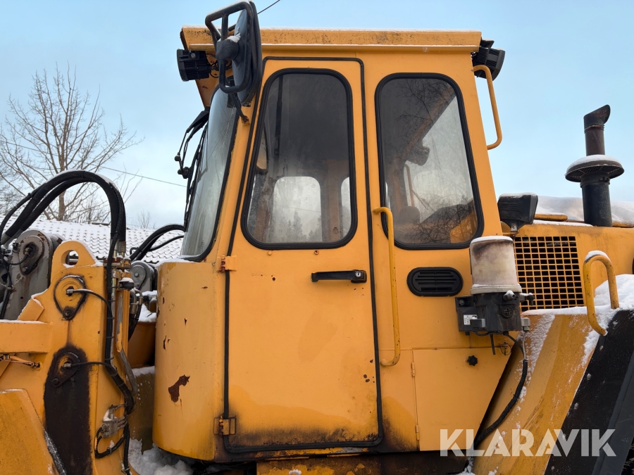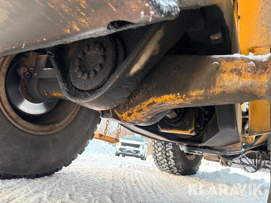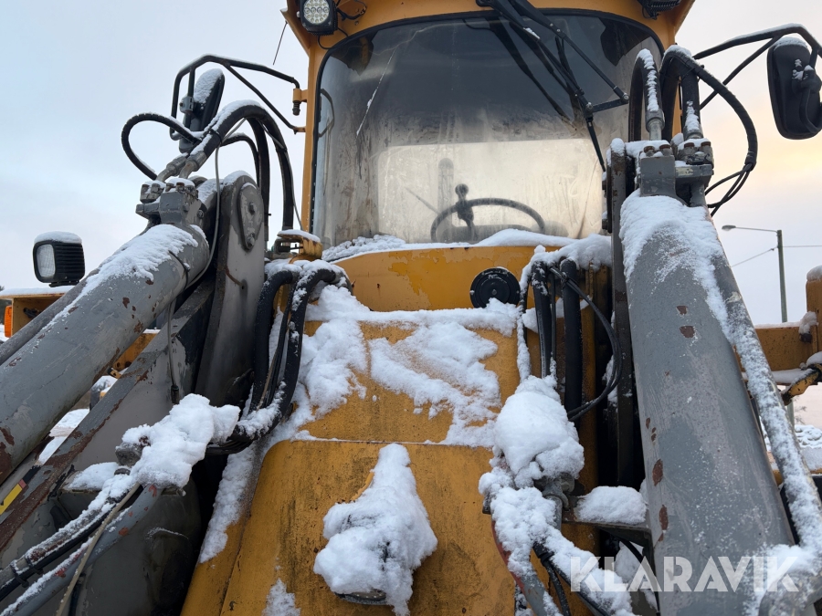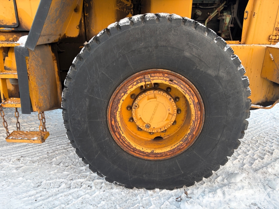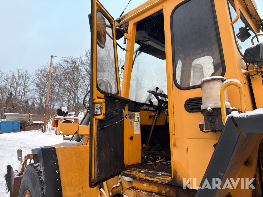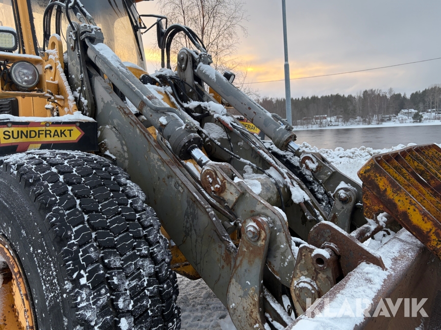 Hjullastare Volvo BM L90 med planeringsskopa och pallgafflar