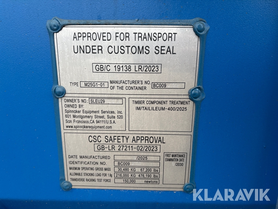Container 20’ High cube One Way