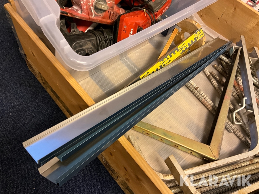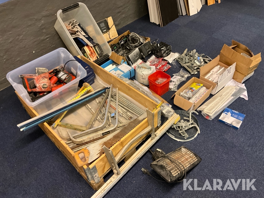 Byggutrustning parti med bland annat verktyg och utrustning