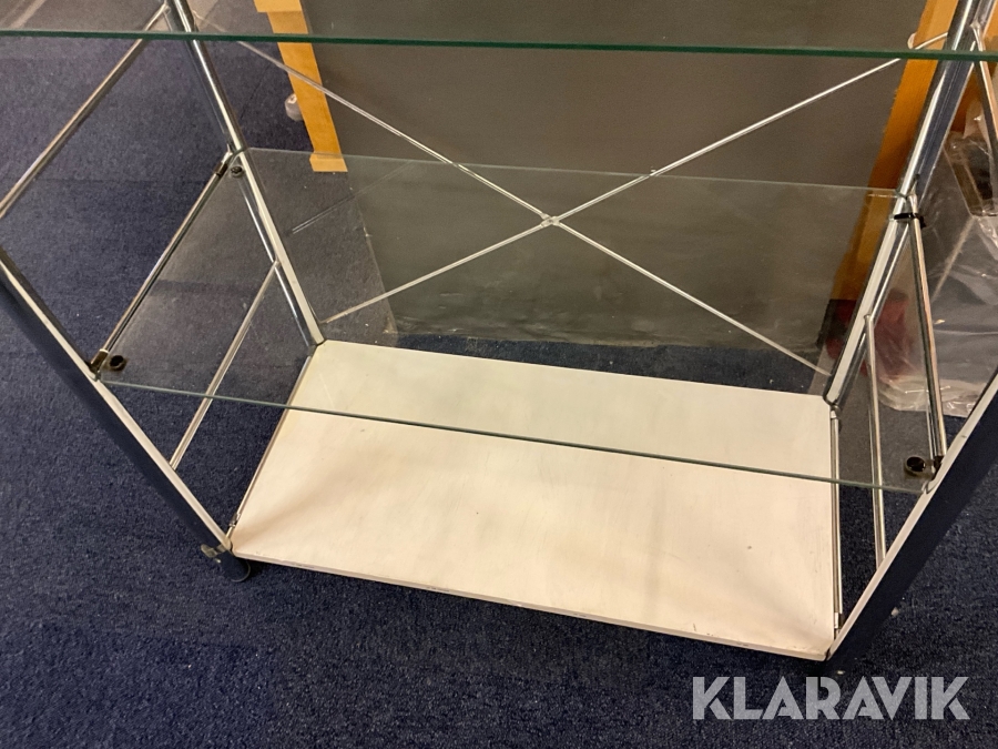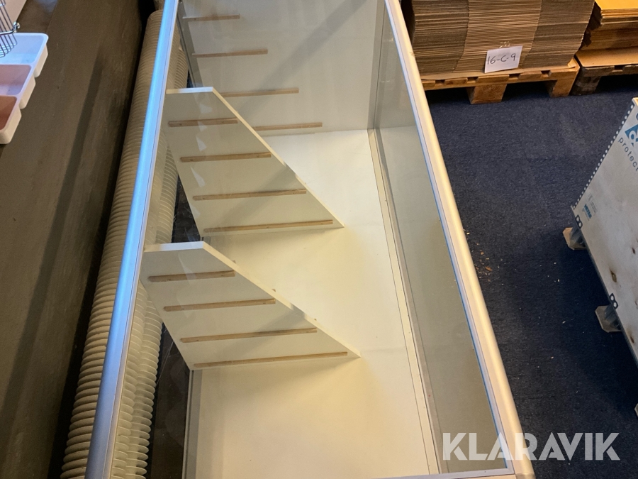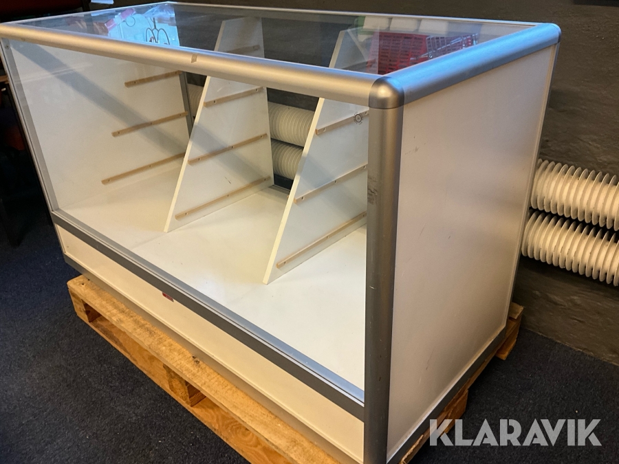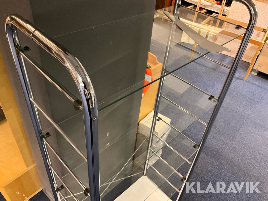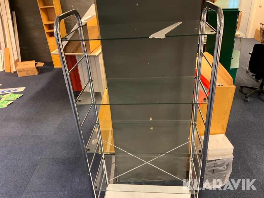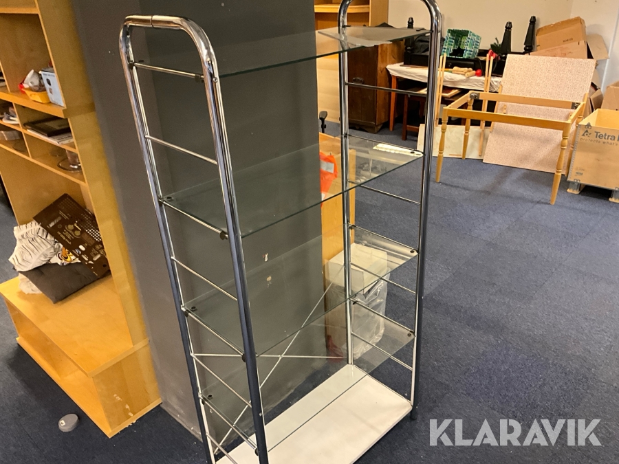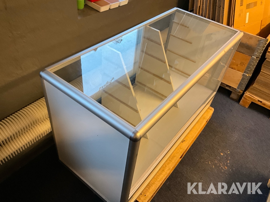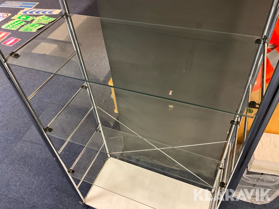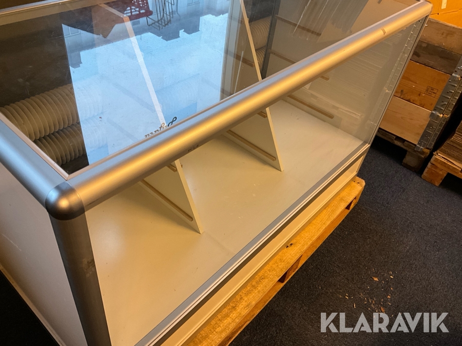 Butiksmonter Hestra Inredningar inklusive lådor och glashylla