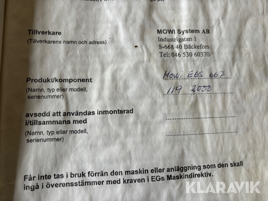 Boka frakt? Det finns ingen specifik information om frakt för just det här objektet, men om du skickar oss en förfrågan via vårt fraktformulär, så undersöker vi möjligheten. Paket, EU-pall eller större maskin? Klaravik har fraktavtal med Schenker och i de fall vi kan hjälpa till med frakt gäller det objekt som ryms i paket eller inom en EU-pall (upp till 120*80 cm och 990 kg). Det går att beställa frakt inom Sverige, dock inte till utlandet. Vid frakt på större maskiner rekommenderar vi gärna transportföretag som du kan kontakta.